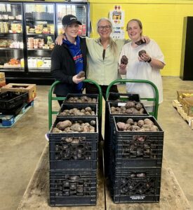 Adirondack Blue Potatoes put us over the 30,000 pound mark of veggies grown and donated so far this year!! We planted these as seed potatoes in August with high hopes for a nice November harvest and they did not disappoint!! Yesterday, with the help of volunteers from Dominion Energy, we harvested all of our Adirondack Blue Potatoes — totaling just over 1,100 pounds of beauty and goodness. The Fredericksburg Regional Food Bank sent a truck out late yesterday afternoon and they picked up 705 pounds of these blue potatoes plus several boxes of zucchini harvested by our volunteers on Monday — for a total of 1,165 pounds. This afternoon we brought the rest (406 pounds) of our Adirondack Blue potatoes into the Food Bank. We hope that the folks who eat these beautiful potatoes will enjoy them as much as we loved growing them!! We’re now at 30,649 pounds of produce that we have grown and donated so far this year to reduce hunger and food insecurity in our community.